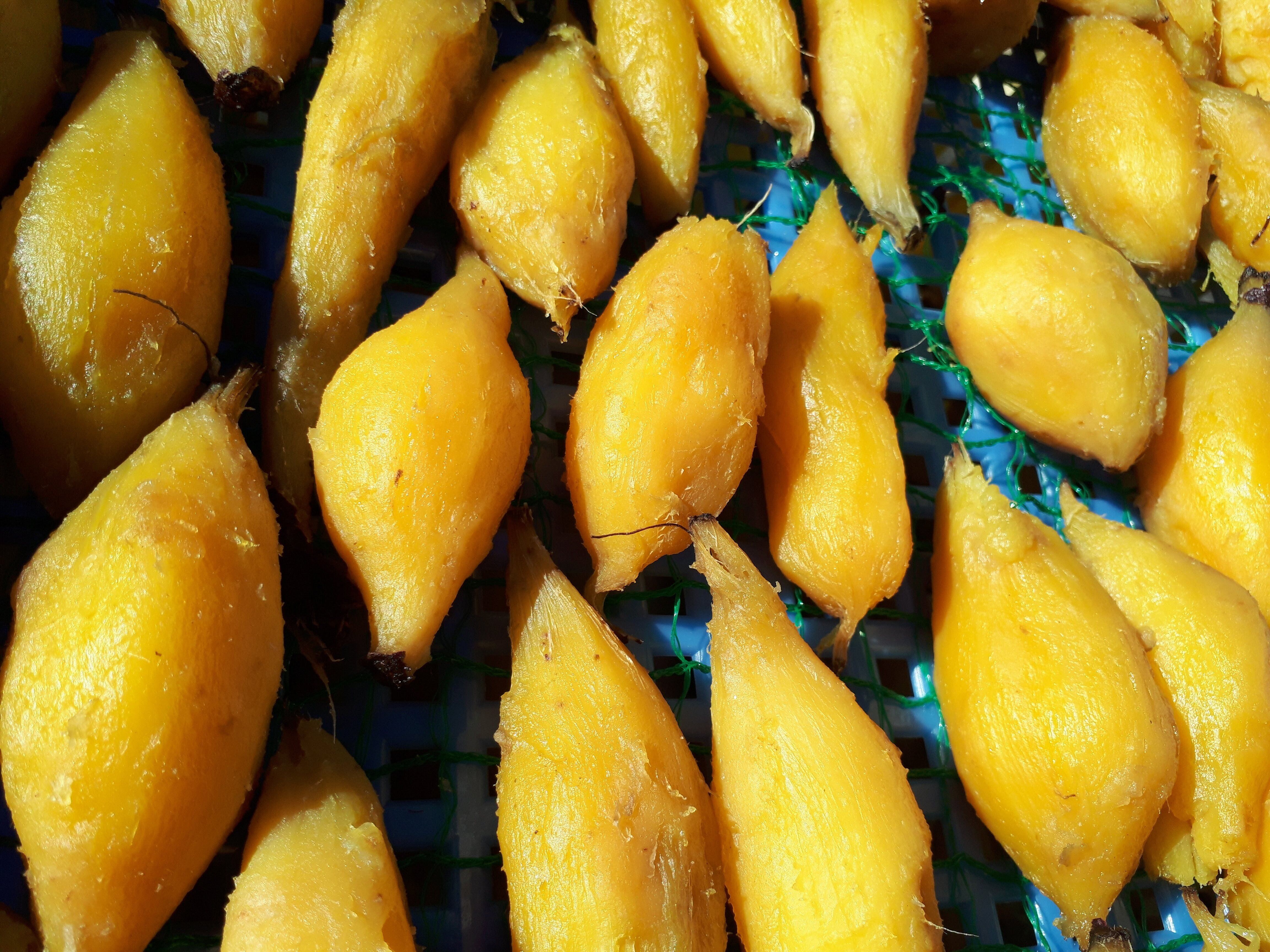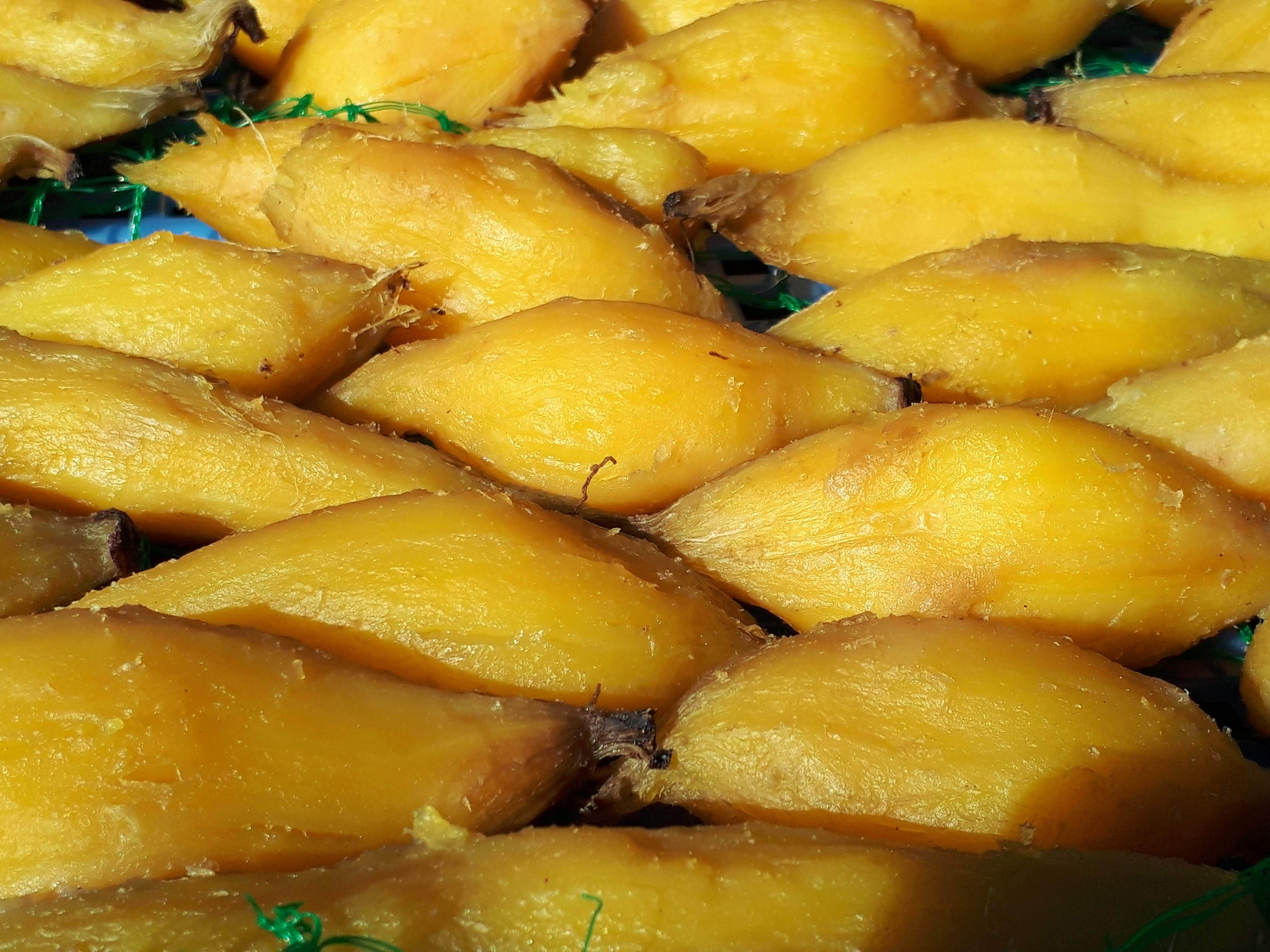 しっとりとした口当たりと、さつまいもの自然な甘みが広がる最高の手作りの干し芋です!こちらは蒸かしたお芋の皮をむいて、まるごと天日干ししいた状態でお届けします。そのままでも、おやつやデザートとしても楽しめます。