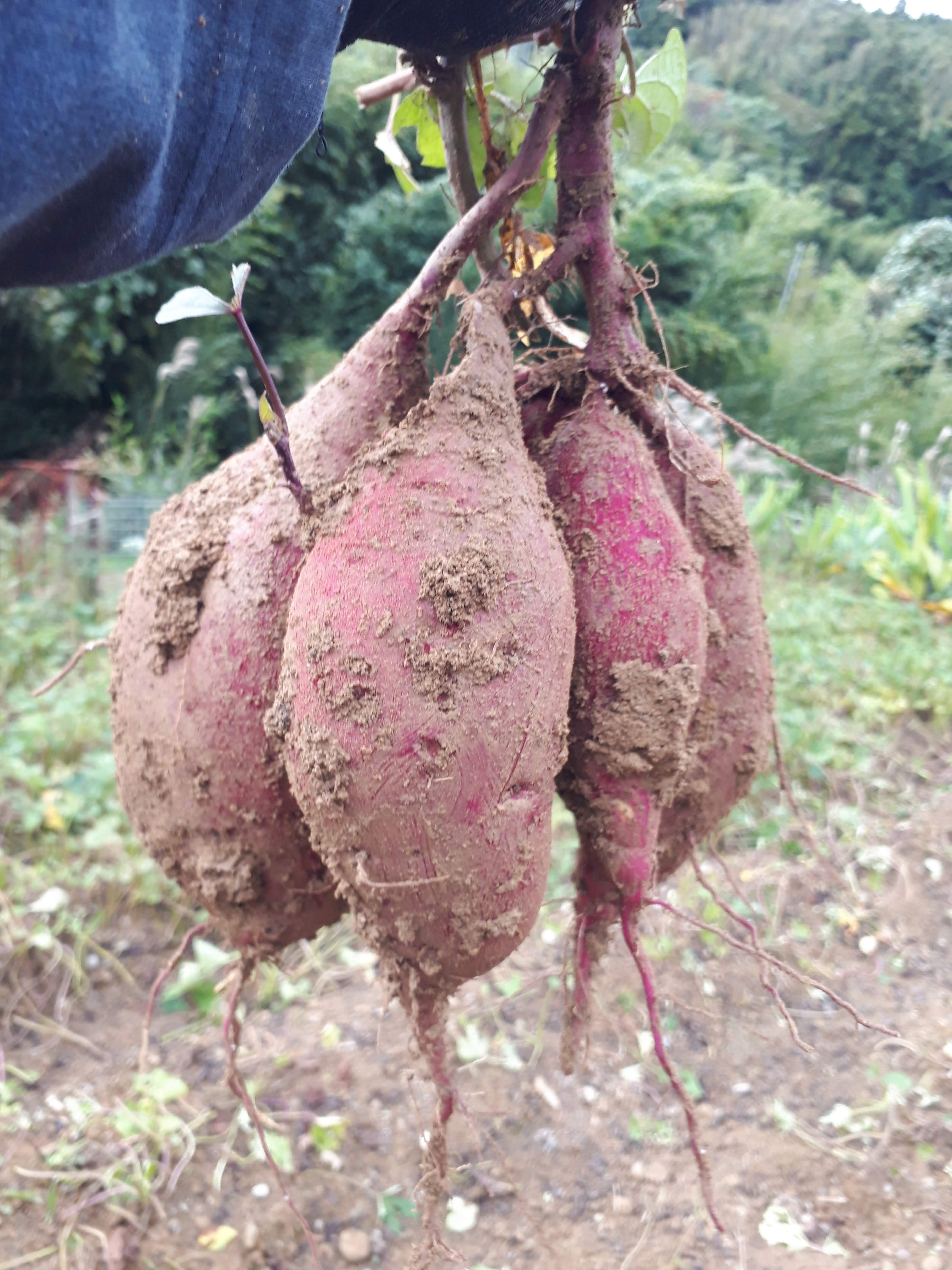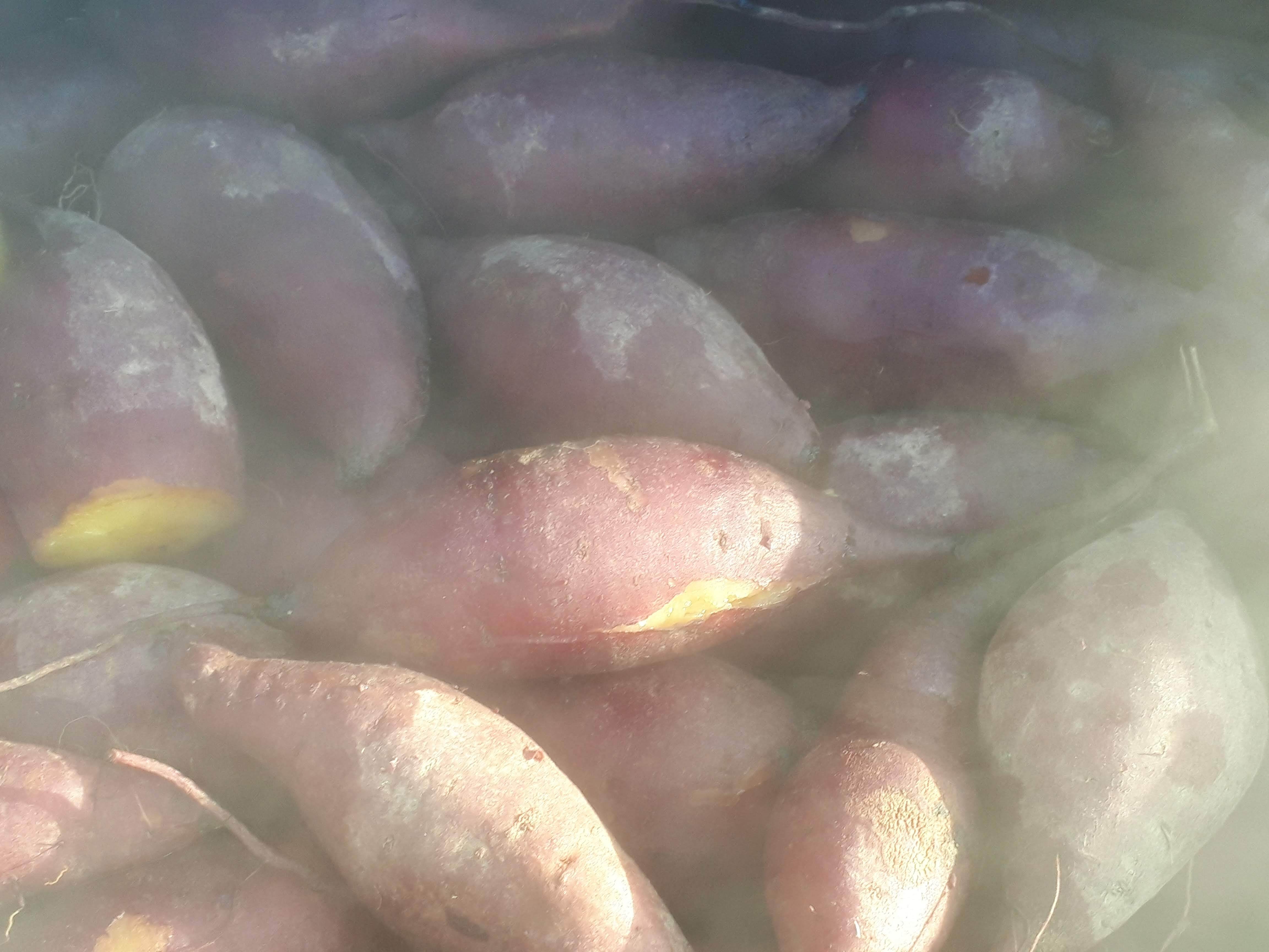 6月に芋のつるを植え、真夏に草取り、10月に芋掘り。12月まで熟成させた自園栽培のさつまいも(紅はるか種)を使用し、手間暇かけて製造した干し芋です。山々に囲まれた自然豊かな環境で、どこまでも広がる青空の下、木々や小鳥、風と会話し、朝日をいっぱい浴びて育ったお芋を、薪で蒸し、天日でじっくりと干しました。まるでお芋そのものを噛みしめているかのような柔らかさと甘みを実感できます。